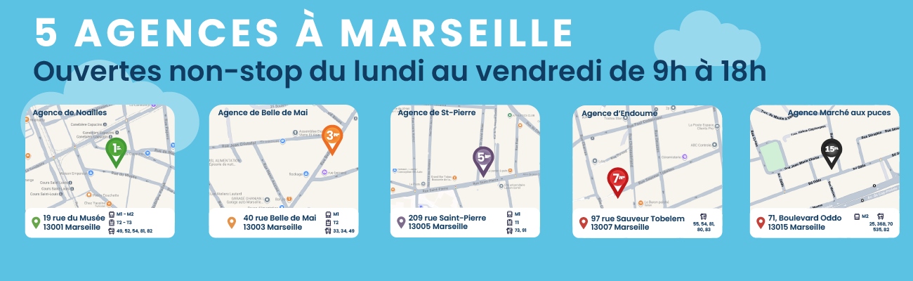 - Votre adresse postale à Marseille dans l’une de nos 5 agences.