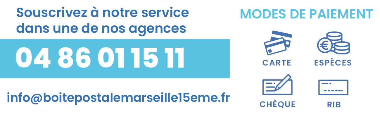 Choisissez votre adresse de boîte postale parmi nos 5 agences à Marseille 1er, 3ème, 5ème et 7ème et 15ème arrdts.